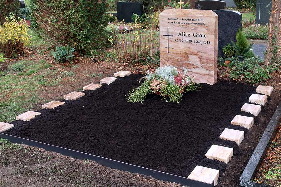 Ob modern oder herkömmlich, jedes Grabzeichen stellt eine Erinnerung dar. Bei uns bekommen Sie ausschließlich handgefertigte und selbst entworfene Grabzeichen. Bevorzugt verwenden wir Materialien aus Deutschland, aber auf Kundenwünsche gehen wir selbstverständlich ein. Wir setzen beim Entwurf auf Individualität, deswegen werden Sie bei uns keine Katalogware finden. Durch die Eigenfertigung können wir fast alle Grabsteine kurzfristig fertigen und durch unser Versetzteam aufstellen.
