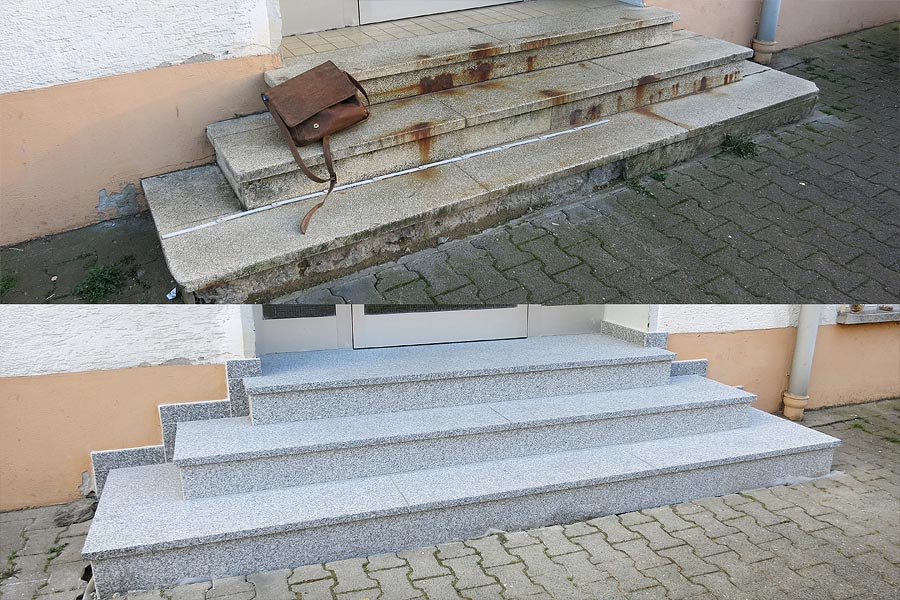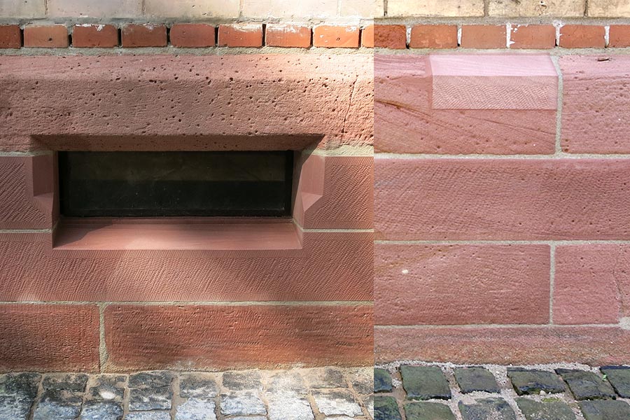 Natursteinreinigungen ohne chemische Zusätze werden bei uns unter anderem im Nass-, Feucht- und Trockenstrahlverfahren je nach Vorgabe des Kunden und des gewünschten Reinigungserfolges durchgeführt. Für feine und filigrane Arbeiten, z.B. im figürlichen Bereich, kommt ein Mikrostrahl- oder Heißdampfgerät zum Einsatz.
