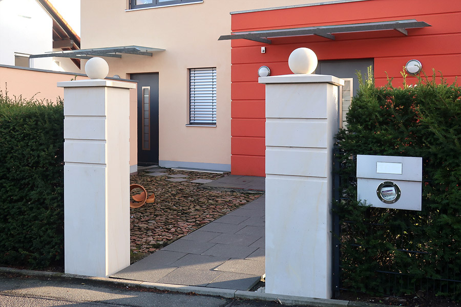 Der Eindruck zählt! Wer mit Naturstein baut, baut nicht nur schöner, er baut auch wirtschaftlicher. Naturstein muss nicht schwer sein, wie man fälschlicherweise meint. Man kann ihn optisch durch seine Farbe und eine geeignete Oberflächenbearbeitung sehr sanft und weich in einen Neu- oder Altbau einarbeiten. Die Gestaltungsmöglichkeiten mit Naturstein kennen keine Grenzen. In vielen Fällen lässt sich Architektur und Naturstein in Einklang bringen.